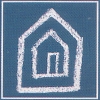 Description: The hobo sign for "This House Is Bigger On the Inside," two nested houses drawn in chalk on blue.