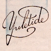 Description: The words "yuletide" in fancy script against a blue watercolor wash